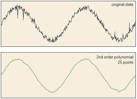 Savitzky–Golay 필터는 일정한 간격으로 주어진 데이터들이 있을 때(이들 데이터는 원래의 정보와 노이즈를 같이 포함한다), 각각의 점에서 주변의 점들을 가장 잘 피팅하는 $k$-차의 다항식을 최소자승법으로 찾아서 그 지점에서의 출력값을 결정하는 필터이다. 이 필터는 주어진 데이터에서의 극대나 극소, 또는 봉우리의 폭을 상대적으로 잘 보존한다.(주변 점들에 동등한 가중치를 주는 Moving Average Filter와 비교해 볼 수 있다).