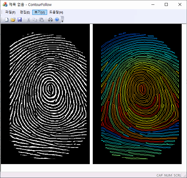 이진 영상에서 전경의 경계를 저장하는 함수다. 전경의 최외각을 8-방향 연결성을 체크하면서 추적하도록 설계되었다(chain code를 참조하면 된다). 전경의 두께가 1 픽셀이더라도 항상 닫힌 윤곽선을 형성하게 만들었다(다르게 행동하도록 바꿀 수 있다). 전경에 서로 연결되지 않은 blob가 여러 개 있는 경우도 쉽게 처리할 수 있게 출력은 벡터 컨테이너를 사용했다.