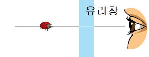 유리창 너머로 작은 벌레가 보인다. 눈에 보이는 유리창에서 벌레까지의 거리는 실제 떨어진 거리보다