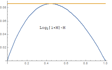 $$0\le \log_2 (1+M)-M \le 0.0860713$$