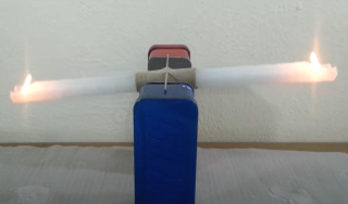 양초로 시소를 만들고 살짝 흔들었을 때 진동을 한다(시소 축을 양초의 중심축에서 약간 비켜서 통과하게 만들어야 한다. 왜?). 양초의 양쪽에 불을 붙여서 태우면 진동의 주기는 어떻게 변할까?