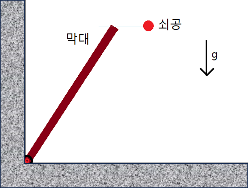 막대의 끝과 쇠공은 같은 높이에서 떨어진다. 바닥에 먼저 닿는 물체는?