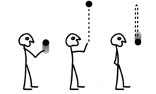 두 시간을 비교해보면 위로 던져진 물체가 최고점에 올라가는데 걸리는 시간보다 다시 내려오는데 걸리는 시간이 더 길다는 것을 볼 수 있다: