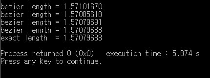 printf("bezier length = %.8f\n", BezierLengthCircle(k[i]));