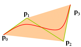 이는 Bezier 곡선이 control points가 만드는 convex region 내부에 있음을 의미한다. Bezier 곡선의 convexity 성질은 여러 좋은 특성을 준다. 몇 가지만 나열하면, 첫째가 Bezier 곡선은 항상 컨트롤 포인트의 convex hull 내에 놓이게 되므로 곡선의 제어 가능성을 보장한다. 둘째는 교차 여부를 쉽게 확인할 수 있다. 또한 culling을 가능하게 한다.