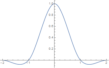 $$K(x) = \left\{ \begin{array}{ll} \text{sinc}(\pi x) \text{sinc}(\pi x / a), & |x|<a \\ 0 ,& |x|\ge a\end{array}\right.$$