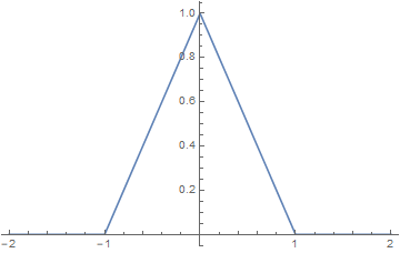 $$ K(x) = \left\{ \begin{array}{ll} 1 - |x| , & |x| < 1\\ 0, & |x| \ge 1 \end{array} \right. , \quad\quad H(\omega) = \text{sinc}^2 \Big(\frac{\omega}{2} \Big) $$