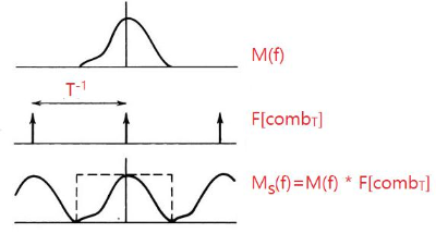 그런데 $M_s(f)$는 frequency domain에서 주기가 $f_s = 1/T$인 주기함수이므로 Fourier series로 표현할 수 있다:($\text{comb}_T$ 함수와 같은 방식으로 하면 계수를 쉽게 찾을 수 있다: Poisson summation formula)