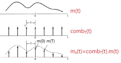 $$m_s (t) : = m(t) \text{comb}_T(t) = \sum m(nT) \delta (t- nT)$$