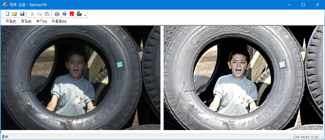 아래 코드는 출력 영상의 dynamic range를 $[m-1.2\sigma, m+1.2\sigma]$로 한정한 후, 픽셀 값을 $[0.255]$로 stretching 하였다. 픽셀 값에 $\log$를 취할 때는 $\log(0)$을 막기 위해서 $\mbox+1$을 하였다. 컬러 영상은 각각의 RGB 성분에 대해서 그레이 영상의 retinex process을 적용하면 된다.// recursive 가우시안 필터의 계수 계산;