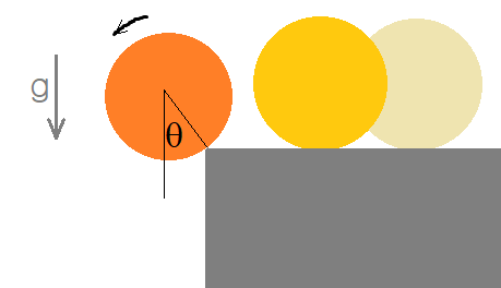 책상 위를 구르는 동전이 책상 가장자리에 도달하면 모서리를 축으로 회전을 한다. (물론 모서리에서 마찰이 충분히 제공된다는 전제 하에서). 그러다가 모서리에서 떨어지게 되는데 언제일까?