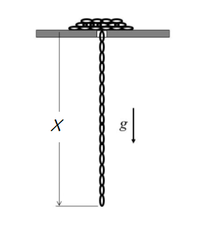 포개져 있는 체인이 한쪽 끝을 책상 아래로 향하게 하면 체인은 점차 풀리면서 내려가는 운동을 한다. 이 운동의 가속도는 얼마일까? 단, 체인은 부드럽게 풀린다고 생각하면 된다.