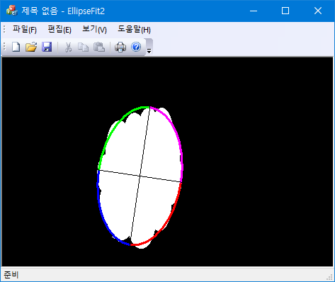 보통 object을 타원 피팅할 때 윤곽선 정보를 이용하는데, 이 방법은 윤곽선을 추출할 필요가 없어서 편리하다. 단 내부에 빈 곳이 있는 object의 경우 회전관성을 감소시키므로 좋은 결과를 기대할 수 없다. 영상이 다수의 object를 담고 있을 때는 connected component labeling을 한 후 각각의 component에 대해서 fitting을 수행하면 된다.