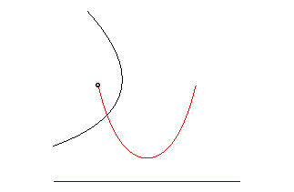 처럼 주어진다. 따라서 초점과 꼭짓점을 알므로 구르는 포물선도 쉽게 그릴 수 있다.