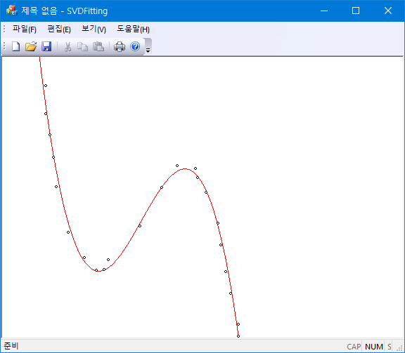 를 하여서 원하는 parameter vector를 얻을 수 있다. 그러나 피팅 문제에 따라 행렬 $\mathbf{A}^T. \mathbf{A}$가 매우 singular 해져 역행렬을 구할 수 없게 되는 경우에 종종 생긴다. 예를 들면, 저주파의 신호를 고주파 기저 함수를 이용하여서 최소자승법을 사용하고자 하는 경우 등에 이러한 문제에 부딪히게 된다. 이런 경우에는 직접적으로 $\mathbf{A}^T. \mathbf{A}$의 역행렬을 구하는 방법을 이용할 수 없고