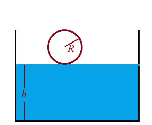 단, 공에 담길 수 있는 물의 무게는 $W$이고, 공이 잠긴 후 수면은 처음보다 $a$만큼 높아졌다.
