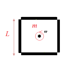 질량 $m$, 길이 $L$인 막대 4개의 끝을 연결해서 정사각형을 만든 후 중앙을 통과하는 축에 대해 회전을 시킨다. 막대와 막대를 연결하는 지점(꼭짓점)에 작용하는 힘의 크기는?