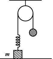 바닥에서 물체가 떨어지기 위해서는 추의 질량이 얼마 이상이 되어야 하는가? 단, 처음 용수철은 늘어나거나 압축되지 않는 상태이고 추는 정지상태에서 떨어진다.