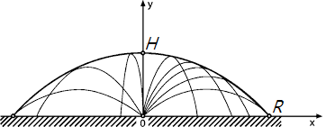 로 표시된다. 여기서 $H=v_0^2/2g$는 포탄이 도달할 수 있는 최고 높이다.