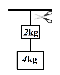 위쪽 줄을 자른 직후 두 물체의 가속도 크기는?