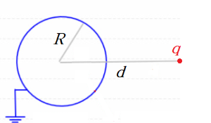 $$ \int \rho_2 V_1 d^3x = V_1(R) \int_{r=R} \rho_2 d^3x + V_1(d) \int_{r>R} q\delta(\vec{r}-d\hat{k}) d^3 x= q'\frac{kQ}{R} + q\frac{kQ}{d} $$ 이므로 둘을 비교하면 $$q' = -\frac{R}{d} q$$을 얻는다.