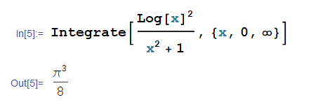$$I = \int_{0}^{\infty} \frac{(\log x)^2}{x^2 + 1}dx=\frac{\pi^3}{8}$$