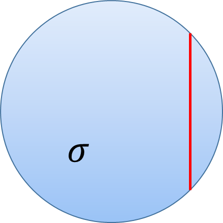 [Q1] 균일한게 대전된 구면이 있다. 구면을 그림처럼 자르면 단면은 원이 된다. 원의 중심에서 왼쪽 부분의 전하가 만드는 전기장의 세기 $E_L$과 오른쪽 부분의 전하가 만드는 전기장의 세기 $E_R$을 비교하면?