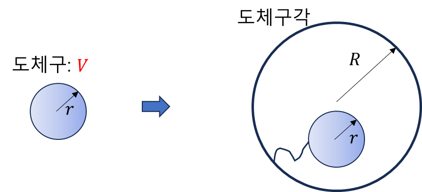 전위가 \(V\)인 대전된 도체구(반지름\(=r\))를 도체구각(반지름\(=R\)) 속에 넣었다. 이후 도선을 이용해서 둘을 잠시 연결한 후 다시 제거하였다. 도체구각의 전위는?
