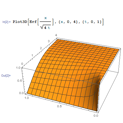 항상 $v(0,t) = 0$을 만족함을 쉽게 확인할 수 있다. 따라서 $x\ge 0$에서 $u(x,t) = v(x,t)$이다. 초기온도 분포가 일정한 ($f(x)=T$) 경우는 적분을 정리하면 error function으로 써짐을 알 수 있다.