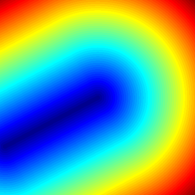 두 점 $A$와 $B$가 만드는 선분 $\overline{AB}$가 있고, 한 점 $P$에서 이 선분까지 거리를 구하려고 할 때 단순히 $\overline{AB}$를 통과하는 직선과 점 $P$의 거리를 구해서 쓰면 안 된다. 그림처럼 $P$가 $P'$의 위치에 있는 경우에 $\overline{AB}$를 통과하는 직선과의 거리가 더 짧지만, 선분과의 거리는 $P'$와 $A$와 거리로 주어진다. 마찬가지로 $P$가 $P''$에 있을 때는 점 $B$와 거리가 최단거리다. 정리하면,
