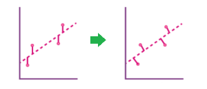 주어진 데이터를 잘 피팅하는 직선을 찾기 위해서는 데이터를 이루는 각 점의 $y$ 값과 같은 위치에서 구하려는 직선과의 차이 (residual)의 제곱을 최소화시키는 조건을 사용한다. 그러나 직선의 기울기가 매우 커지는 경우에는 데이터에 들어있는 outlier에 대해서는 그 차이가 매우 커지는 경우가 발생할 수도 있어 올바른 피팅을 방해할 수 있다. 이를 수정하는 간단한 방법 중 하나는 $y$값의 차이를 이용하지 않고 데이터와 직선 간의 최단거리를 이용하는 것이다.