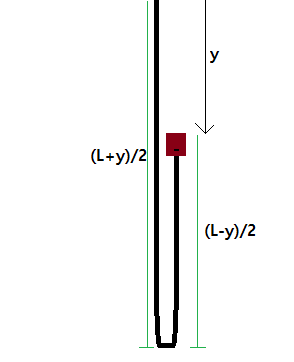 줄의 정지된 부분(아래로 늘어진 길이= $(L+y)/2$)의 위치에너지는