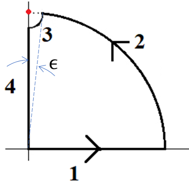경로 4에서는 호의 반지름이 $\epsilon$임을 고려하면 $ z = i y (y: 1-\epsilon\to 0)$이므로