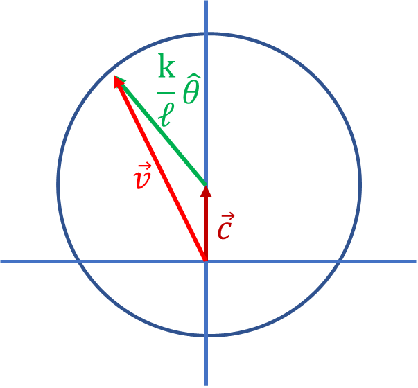 \[ \vec{v} = \vec{c} + \frac{k}{\ell} \hat{\theta}\] 거리의 제곱에 반비례하는 중심력을 받는 행성 궤도 운동의 hodograph가 원이 됨을 보인 것이다.