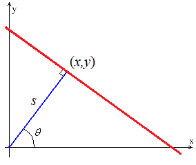 이다. 따라서 주어진 데이터에서 떨어진 거리 제곱의 합이 최소인 직선을 구하기 위해서는 다음을 최소화시키는 $\theta, s$을 구해야 한다. $$ L = \sum_i \big( \sin \theta x_i - \cos \theta y_i +s \big)^2 $$$$ (\theta, s)=\text{argmin}(L)$$
